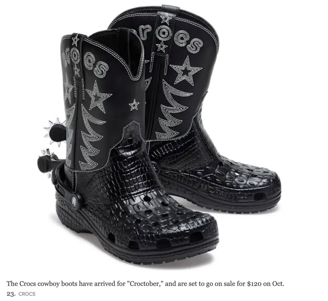 I came across this article and struggled for a minute on where to include it in this issue, then it struck me this story is downright hysterical, so obviously it should go under Entertainment. You remember Crocs, those shoes everyone loves to hate but secretly own a pair because they’re so damn comfortable. Well the company Crocs has been riding one heck of a wave since Covid, and even coined the term “Croctober” with the launch of their limited-edition “classic cowboy boot”. Sadly, even I’m not joking. The company even shared that the idea to launch this new Croc only “took us about 12 minutes” before being approved, which is exactly how long I’m guessing these Crocs cowboy boots will be popular for.