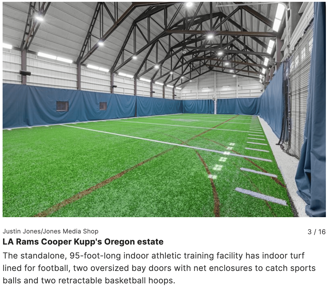 We love us some real estate eye candy, and Cooper Kupp’s Oregon home has an indoor training facility that doesn’t disappoint. Sadly, he’s putting the house up for sale. Fortunately, that means someone else will get to own this amazing property.
