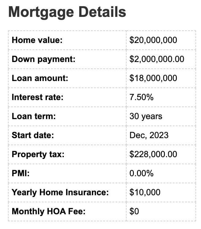 If they buy a $20 million dollar estate, and put down the typical 20% which would come out to $2 million dollars, then they’d be taking out a $18 million dollar loan which would come along with a hefty monthly payment of $145,691. Assuming they don’t pay off the mortgage early (which they probably would, especially if she lands another role in a hit TV show), they would end up paying $52.5 million dollars after taxes and interest on an $18 million dollar loan. That’s $34.5 million dollars more than the $18 million dollar loan you originally took out. Interest costs are a killer!