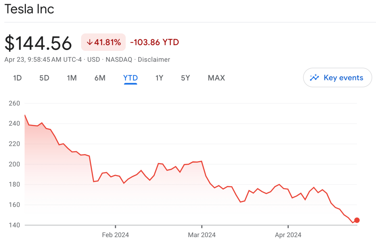 As you can imagine, the stock did what you’d expect and has been on a downward trajectory, off from a high $248.42 at the beginning of the year down to $133.91 at the time of writing this post.
