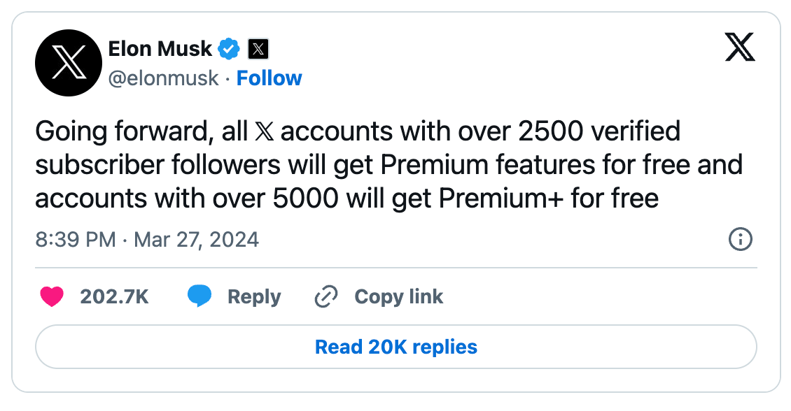 In a change of policy that literally everyone saw coming, Elon Musk’s X/Twitter is now giving out Blue checks marks to some large accounts.