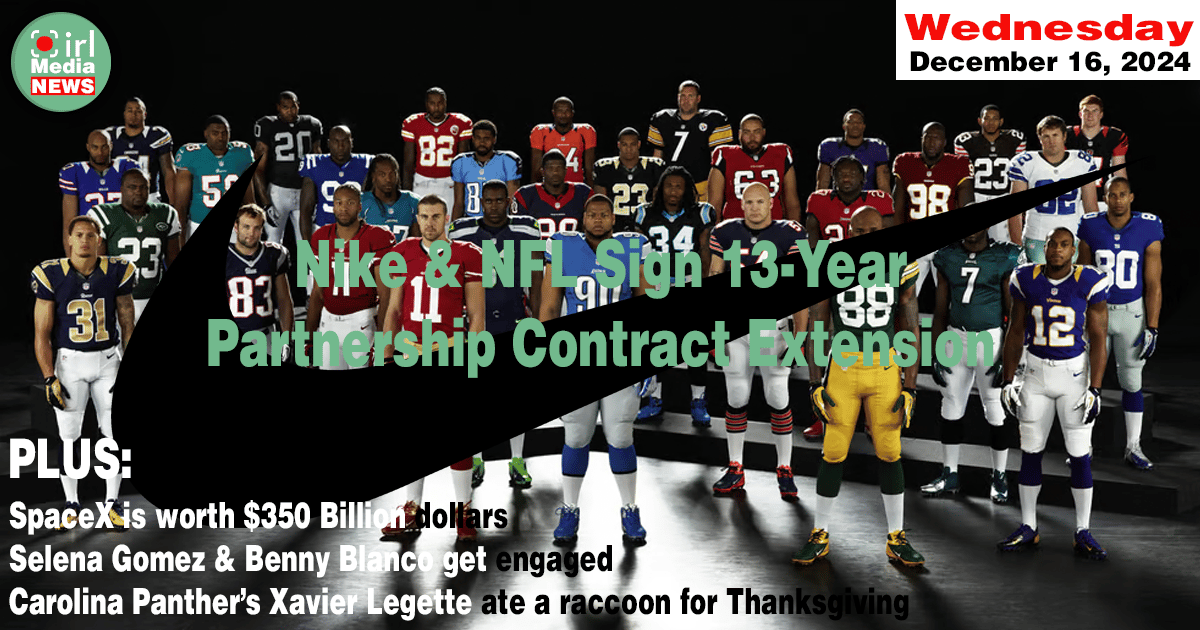 In today’s newsletter we discuss Nike and the NFL signing a 13-Year partnership contract extension, SpaceX allows insiders to sell stock valuing the company at $350 billion dollars, a new memecoin called Fartcoin has a market cap worth $$837 million dollars, GM has decided to stop investing in Cruise and instead will absorb them into GM to offer consumers autonomous vehicles, Affirm gets $4 billion dollar line of credit from Sixth Street, Selena Gomez & Benny Blanco get engaged, SpinLaunch shoots a test satellite at 10,000 G’s into space, Carolina Panther’s Xavier Legette says he ate a raccoon for Thanksgiving.