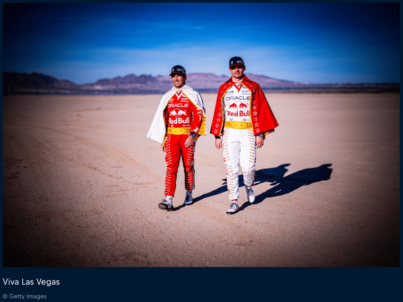 After taking the checkered flag Max Verstappen could be heard singing the King of Rock and Roll, Elvis Presely’s famous “Viva Las Vegas' over the team radio. He seemed to be in great spirits, and definitely changed his tune about the race, even if he can’t carry a tune to save his life, but I digress. The Red Bull team drivers, Max Verstappen and Sergio “Checo” Pérez, even wore Elvis-inspired trademark bedazzled driving suits for the race. File that under ‘When in Vegas’.