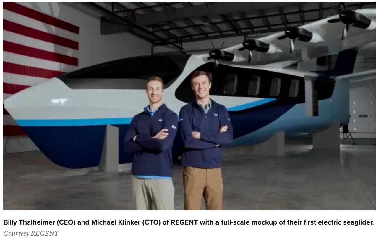 The company has 55 employees, and completed testing of a quarter-scale prototype on Rhode Island’s Narragansett Bay late last year to prove that its seagliders can “float, foil and fly” as expected. The company says it has orders for more than 500 seagliders representing some $8 billion in future revenue.