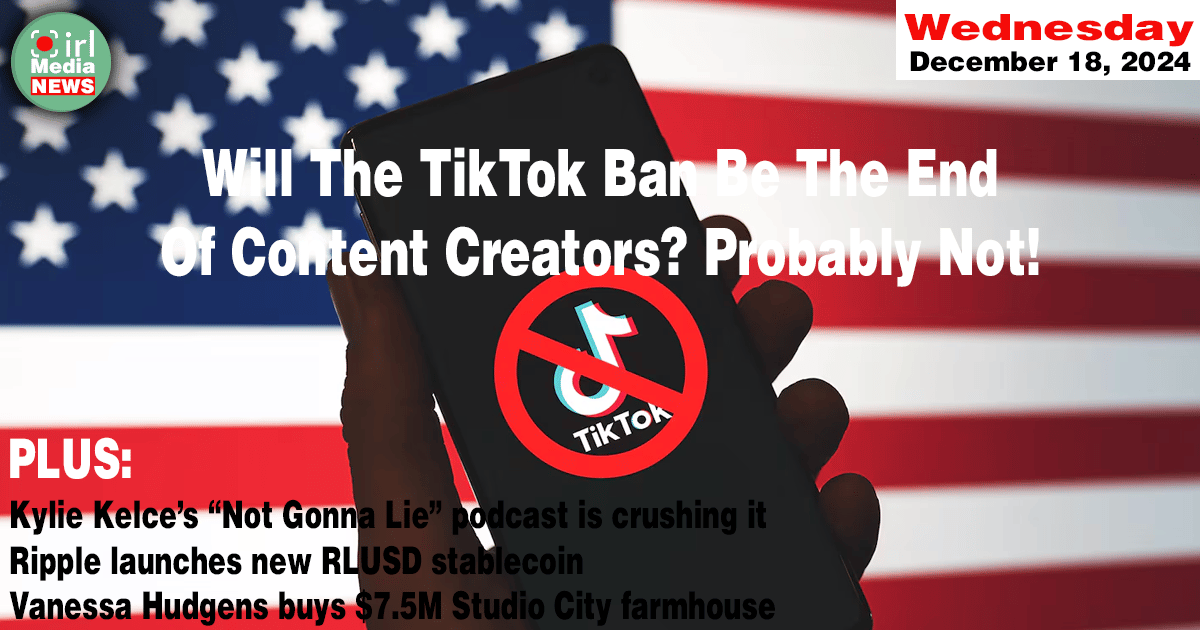 In todayās newsletter we discuss if the TikTok ban will be the end of content creators? (hint: probably not!), Ripple launches new RLUSD stablecoin, Kylie Kelce is taking the podcasting world by storm, Vanessa Hudgens buys a $7.5 million dollar Studio City farmhouse, and who knew the Vatican had their own cycling team?